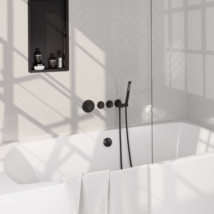 De BRAUER Black Edition thermostatische inbouw badkraan SET 01 is de perfecte combinatie van strakke lijnen en verfijnde elegantie. Met zijn mat zwarte afwerking past deze inbouwkraan naadloos in moderne en minimalistische badkamerontwerpen, zonder in te boeten op stijl. De badvulcombinatie en staaf handdouche zijn ontworpen met oog voor detail en esthetiek, waardoor ze niet alleen functioneel zijn maar ook een blikvanger in uw badkamer vormen. Dankzij de veelzijdige kleur zwart kunt u deze kraan moeiteloos combineren met andere elementen in uw badkamer, zoals tegels, wastafels en accessoires, voor een harmonieus geheel.