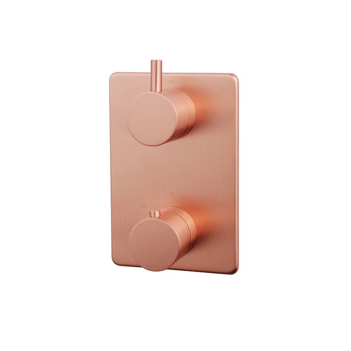 bestaande uit thermostaatknop, omstelknop(pen) en bodemplaat.