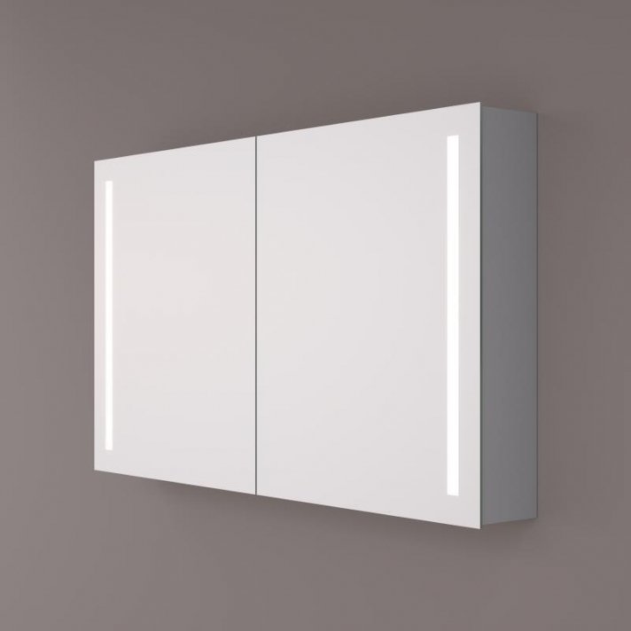Hipp Design Luxe spiegelkast 80x70cm met verticale LED banen, spiegelverwarming, 2 geaarde stopcontacten en verstelbare glazen planken