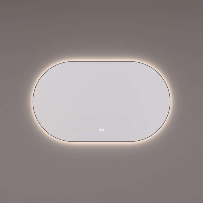 Hipp Design mat zwarte rechthoekige ovale LED spiegel 160x70cm met indirecte verlichting rondom, touchdimmer en spiegelverwarming