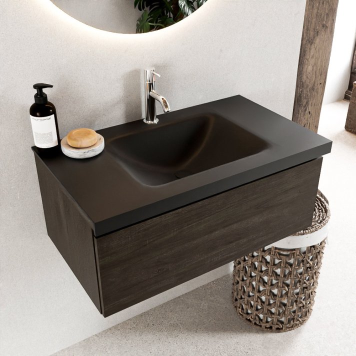 Mondiaz Bukla 80cm badmeubel modulair kleur Dark Brown met 1 lade. Wastafel Cloud midden 1 kraangat kleur Urban.