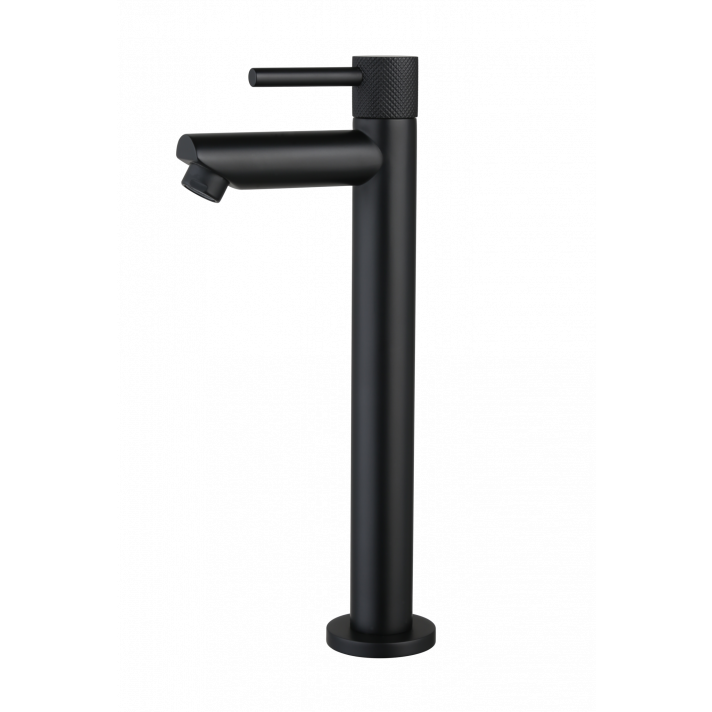 Sani DeLuxe Fonteinkraan opbouw hoog rond Mat Zwart met geribbeld knop