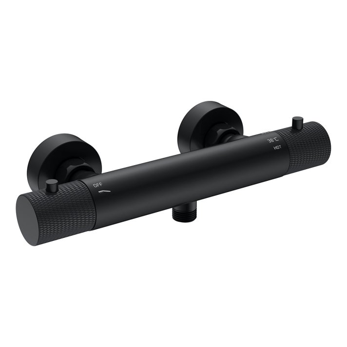 Wiesbaden Ribbd thermostatische douchemengkraan hartafstand 15 cm mat zwart